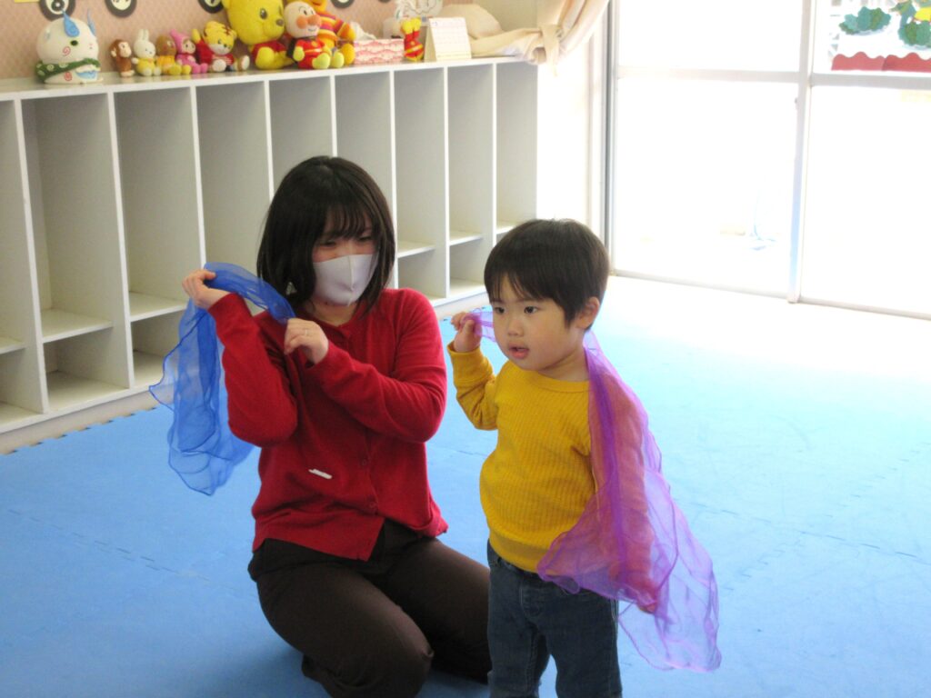 参加者は2組と少なかったが、親子で楽しく音遊びができました。