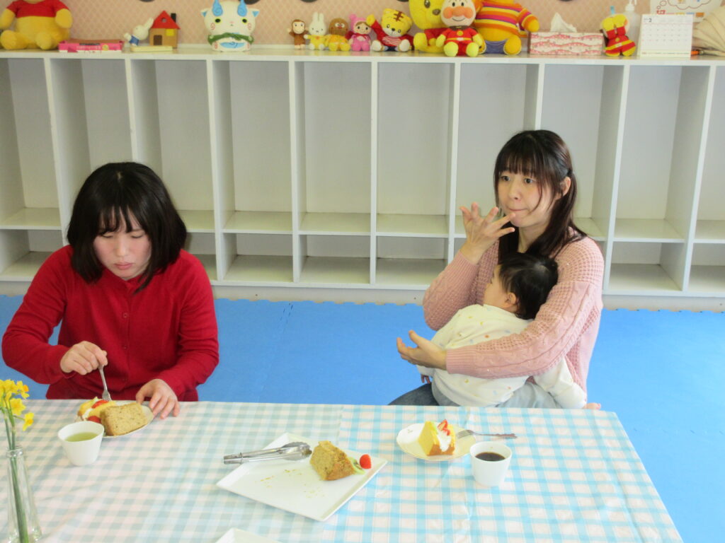 手作りおやつを食べながら、ママだけでおしゃべりタイム♪ わずかな時間だったけど、ほっと一息できたかなぁ・・・・・